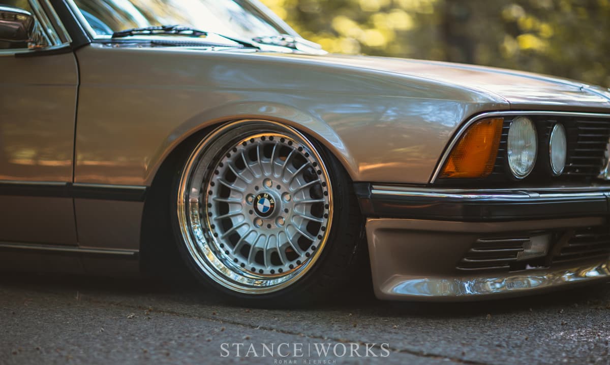 Killer stance is nothing without killer wheels and the ones fitted to Denis’s E23 really are something special.